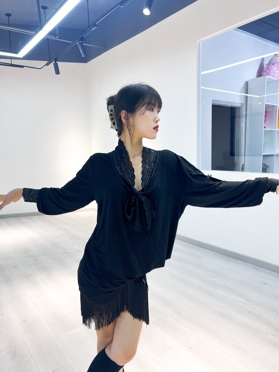 The new Latin Dance Clothing 2022 - style Mordale Long Sleeve Lace Fabric with Q20