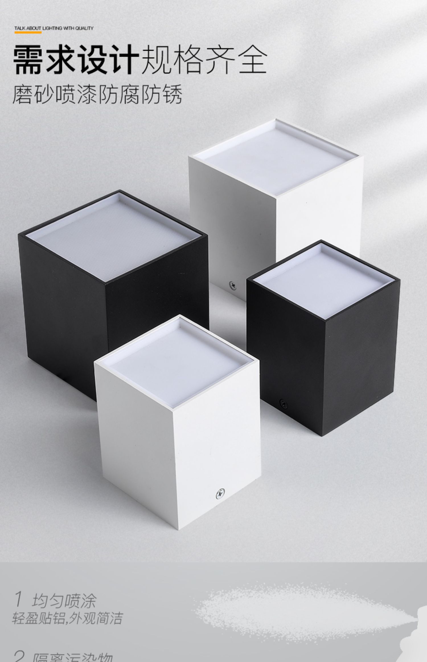 White shell 7 5*7 5cm square-7W white-light white shell 7 5*7 5cm square-7W warm white shell 7 5*7 5cm square-7W neutral light black shell 7 5*7