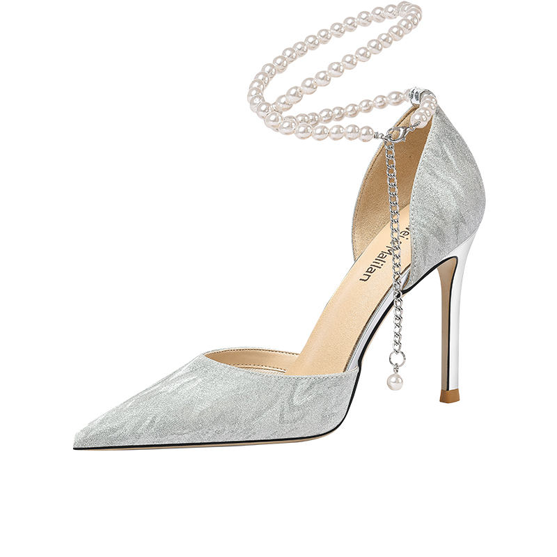 Lily Wei (Spirit rhino) High heel shoe shimmering fine heel pearl chain water crystal shoe big code 41-43 advanced sensation-Taobao