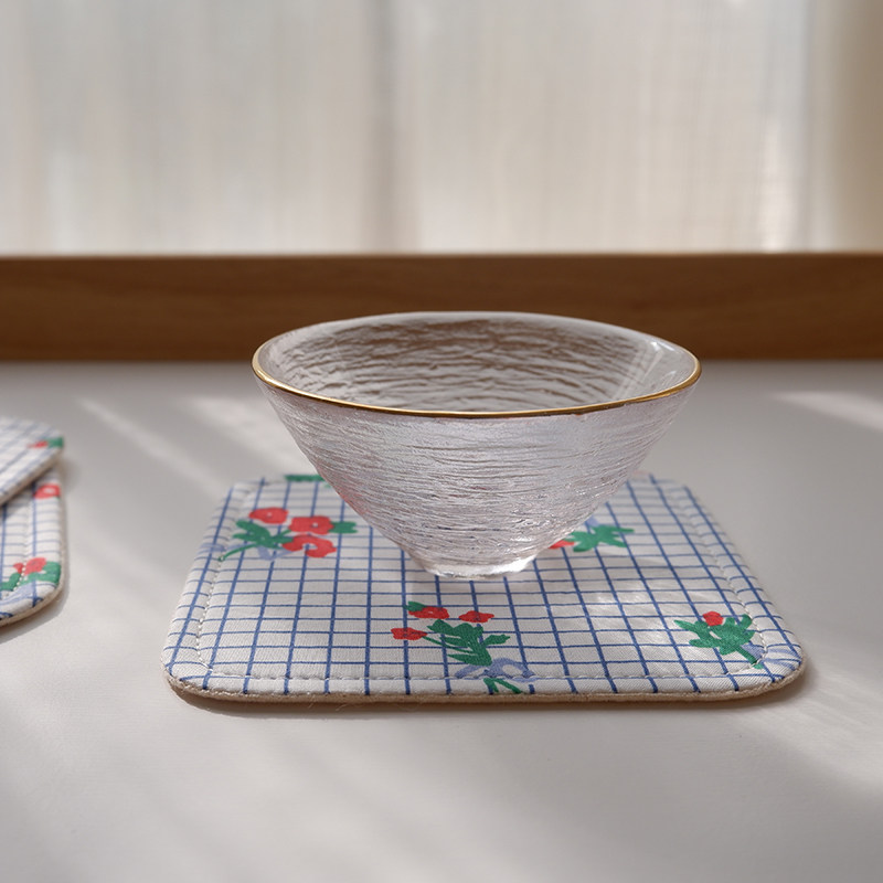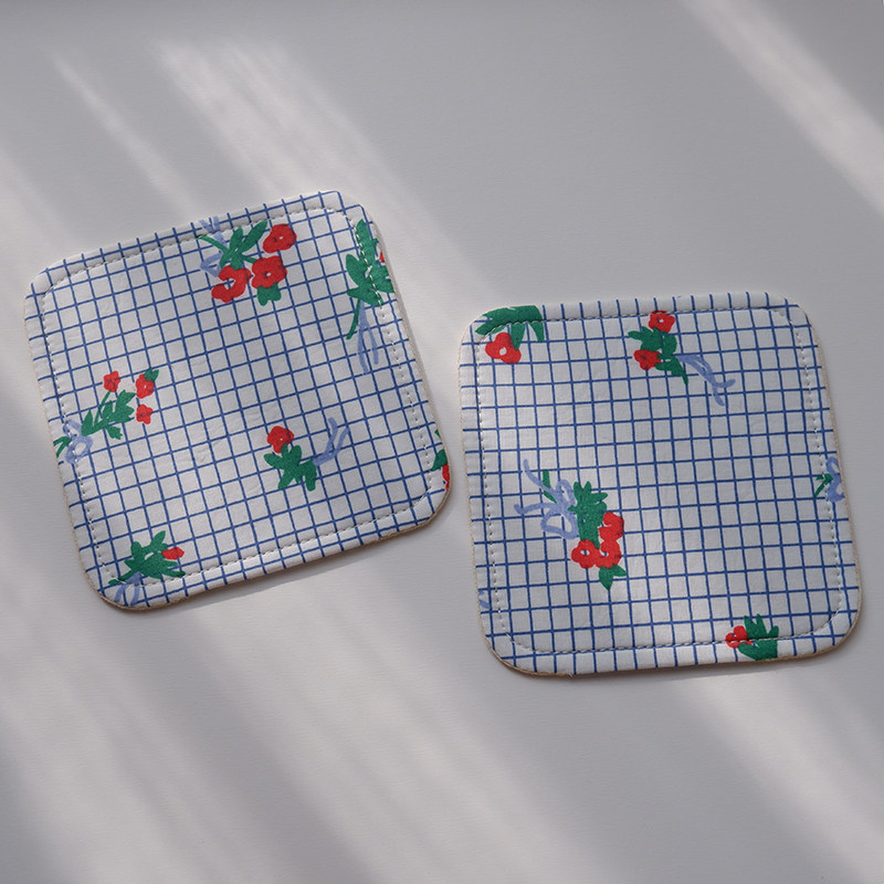 Small bouquet of flowers simple wind pure cotton 10cm rounded square handmade fabric quilted coaster tea mat cute small things