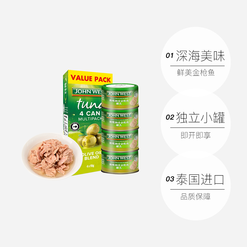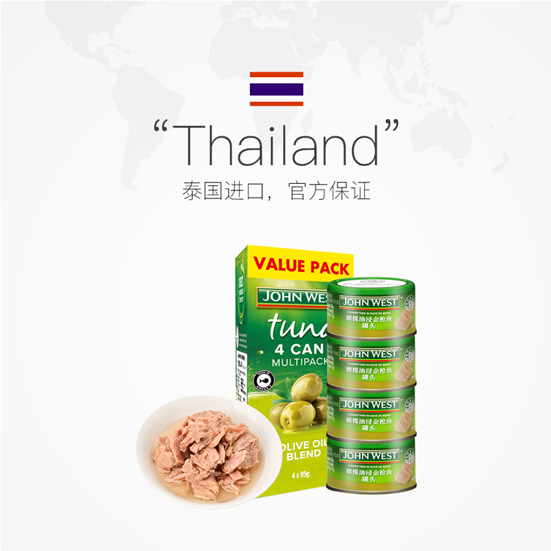 (Self-Employed) Thai Western John Olive Oil Soaked Tuna Canned Four Canned 95g * 4 chunks of fish-Taobao