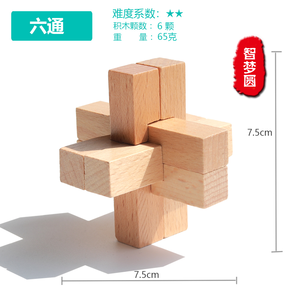 Six Pass Generation Ruban Keyhole Bright Lock Single Beech Wood Adult Children Moving Brain Puzzle Toy Wooden Six two-Taobao