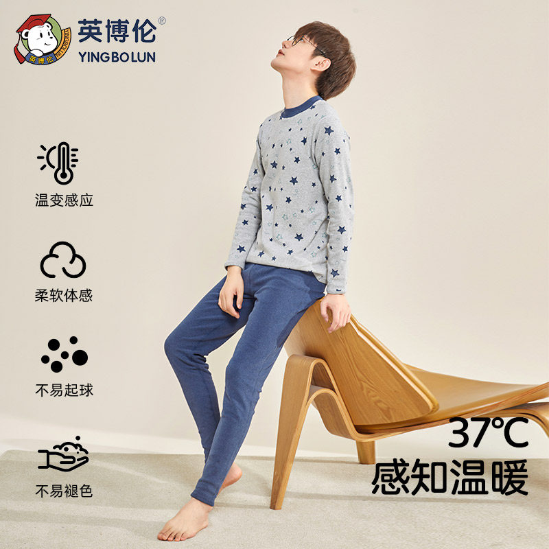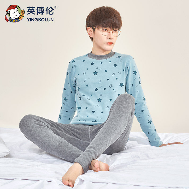 Ying Bo Lun youth plus velvet thickened thermal underwear set pure cotton junior high school students high school students cotton sweater three-layer winter