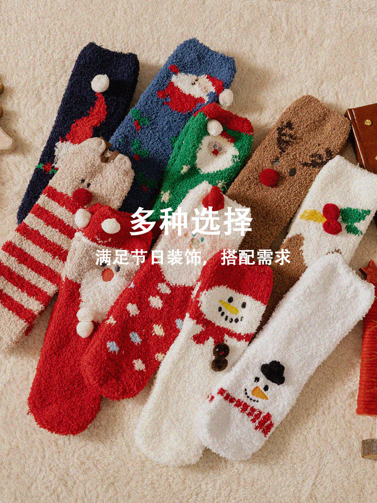 Christmas socks gift box ball female coral velvet hanging cartoon cute winter plush plush floor socks