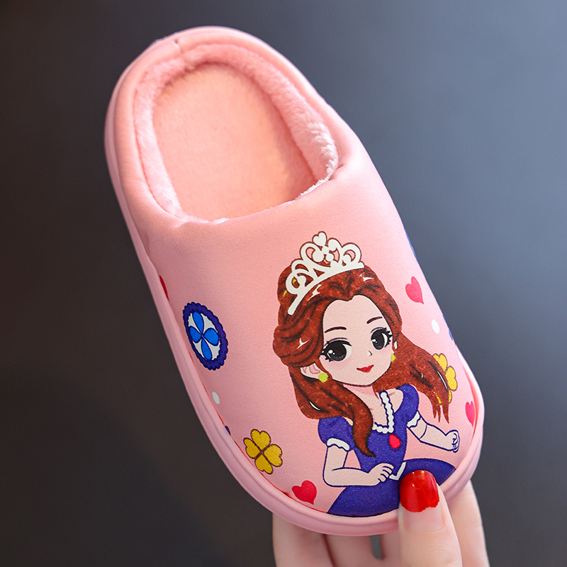 PU WATERPROOF LEATHER FACE CHILDREN COTTON SLIPPERS 2022 AUTUMN WINTER NEW PRINCESS GIRL BABY PLUSH WARM COTTON SLIPPERS