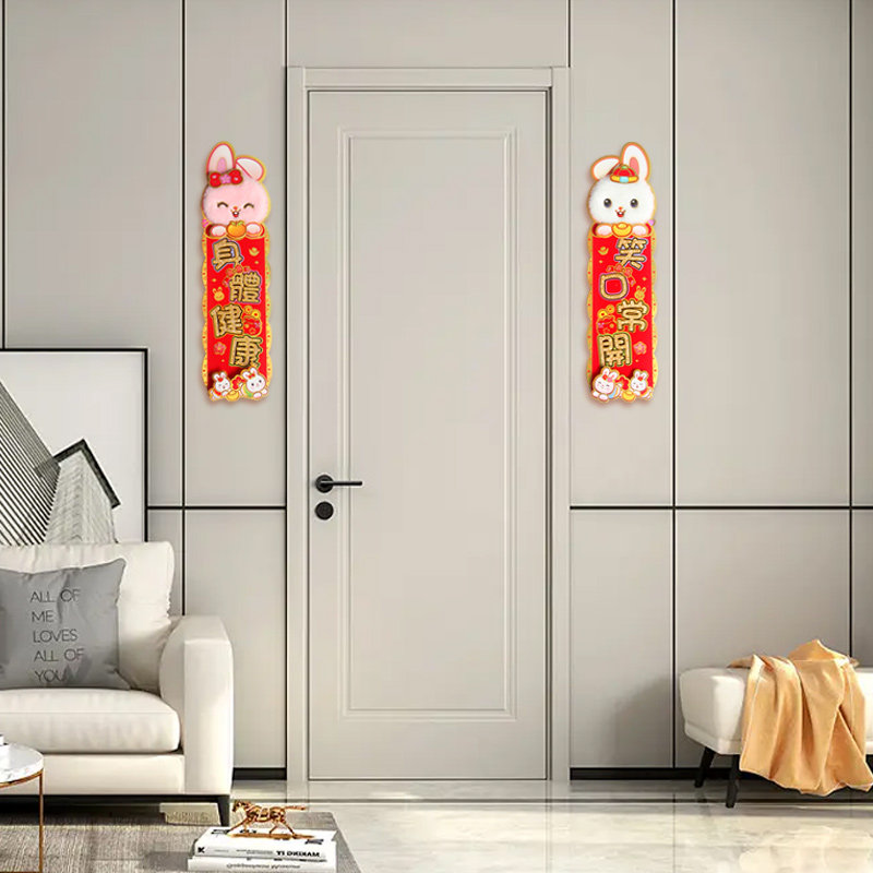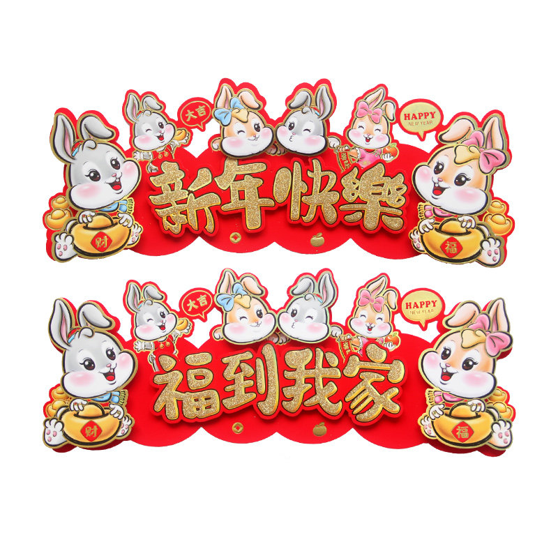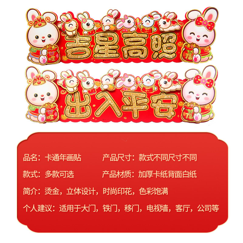2023 New Year's Young Rabbit's Spring - Spring Gate with four - word mini - entry and pass through the Spring Festival cartoon Fulfill