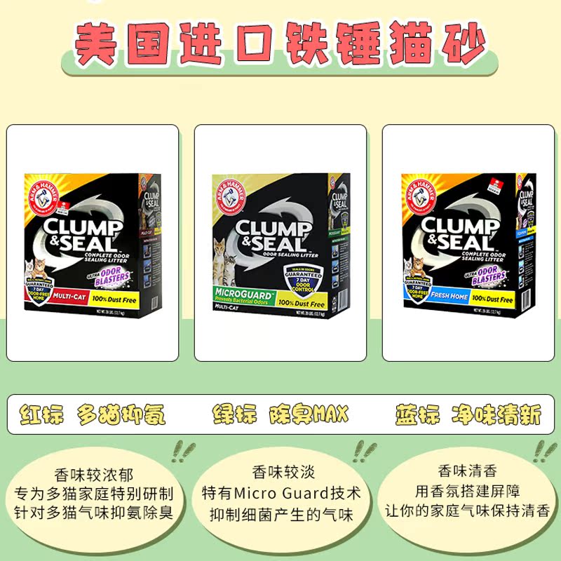 American ai Wo Mei Iron Hammer Cat Sand Black Box Blue Red Green Mark Dust-free Bentonite Cat Sand Mine Sand 28 Pound