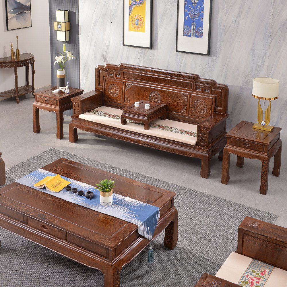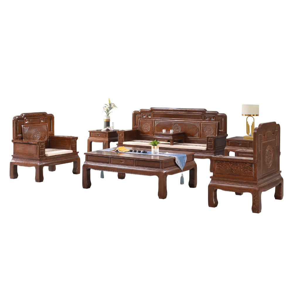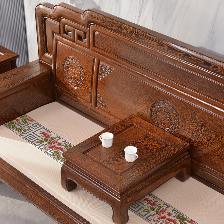 Mahogany chicken wing wood sofa new Chinese national standard mahogany package simple living room national color Tianxiang sofa coffee table combination