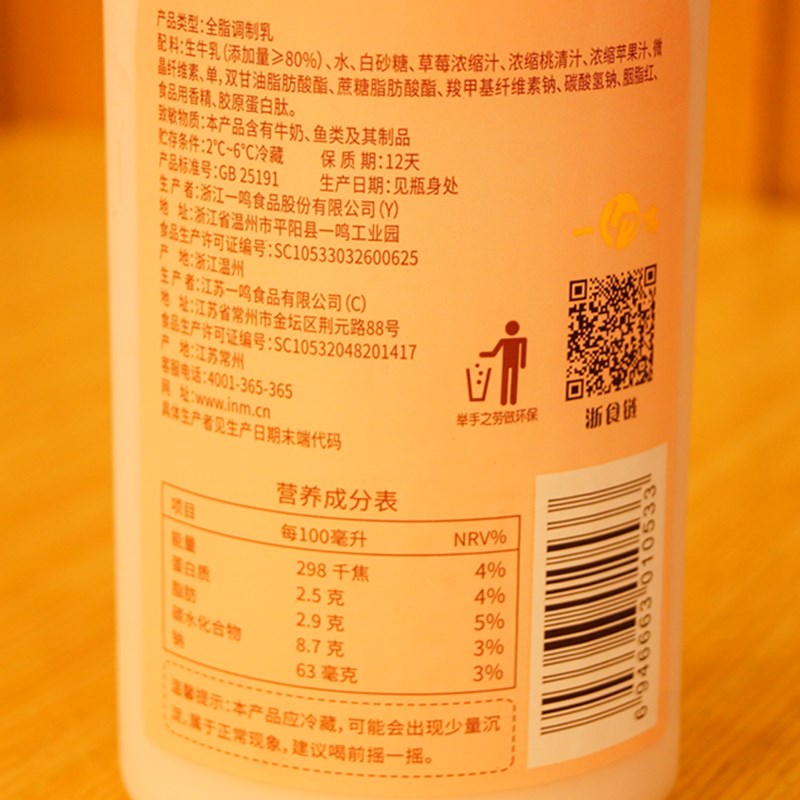 Hangzhou Food Yiming Real Fresh Milk Bar Raw Milk Strawberry Peach Peach Milk 1L Single Bottle Afternoon Tea
