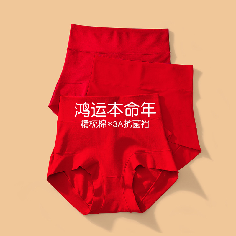 This Life Year Large Red High Waist No Marks Underwear Lady Pure Cotton Harvest Belly Up Small Belly Wedding Flat Corner Pants Antibacterial Crotch-Taobao