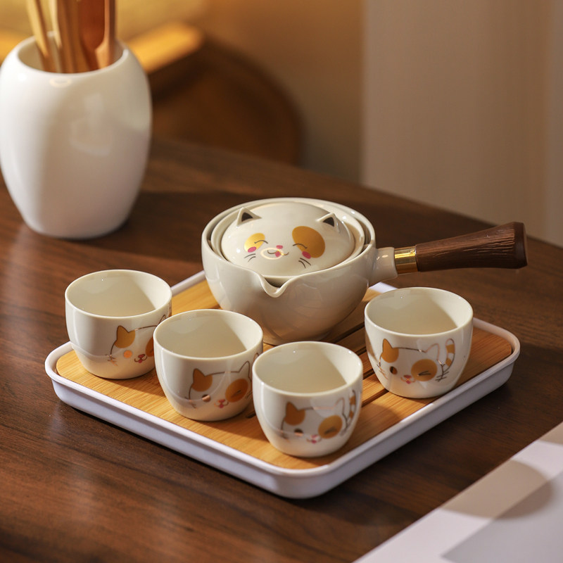 360 ° rotating teapot chaecat single pot 360 ° rotating teapot chaecat 5 pieces 360 ° rotating teapot chaine cat 5 pieces with tea tray] 360 ° rotating teapot chaine cat 6 pieces with brigade