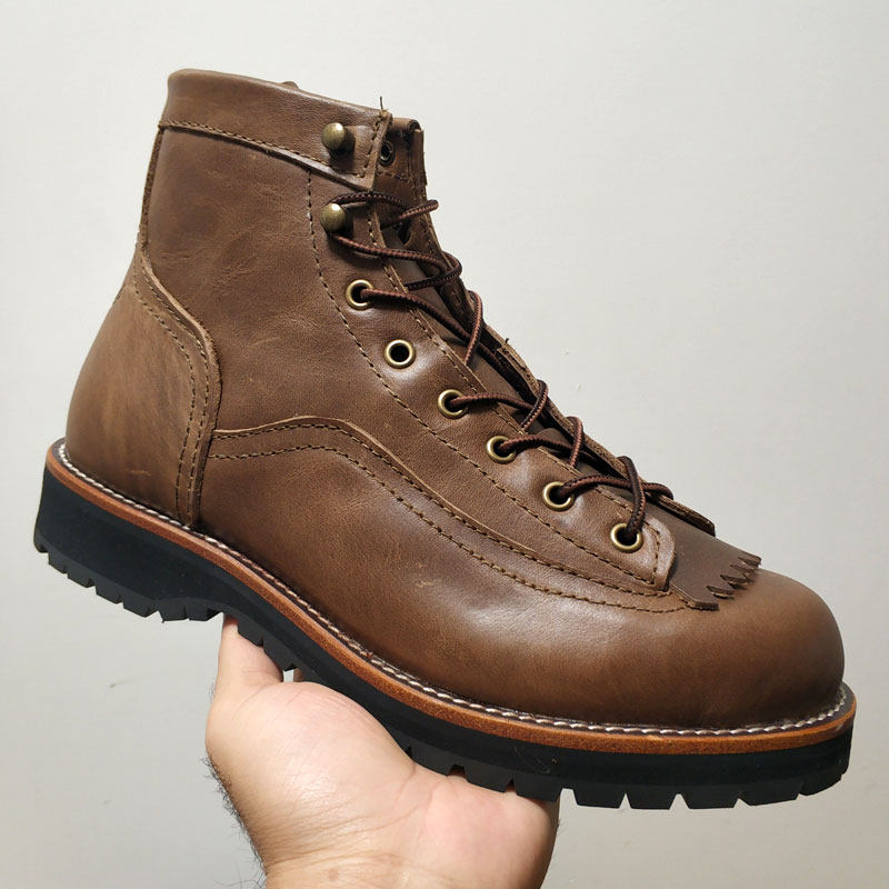Ami khaki high-top tooling shoes men's first layer cowhide casual boots American retro men's riding paratrooper boots Martin boots