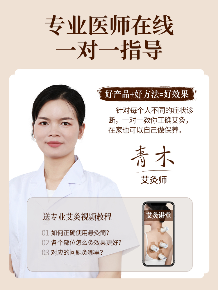 (Personal moxibustion on the acupoints of the whole body, controllable smoke temperature adjustment, safe and anti-scalding, one-on-one guidance from doctors) 3 hanging moxibustion boxes (granted national patent) One box of 54 moxa columns (80% of people choose)