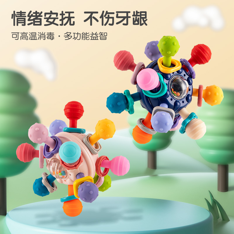 Baby Toys 0 1 year old puzzle early to teach 6 months Baby 5 milled tooth rubber Manhattan atom hands catch the ball nibble-Taobao