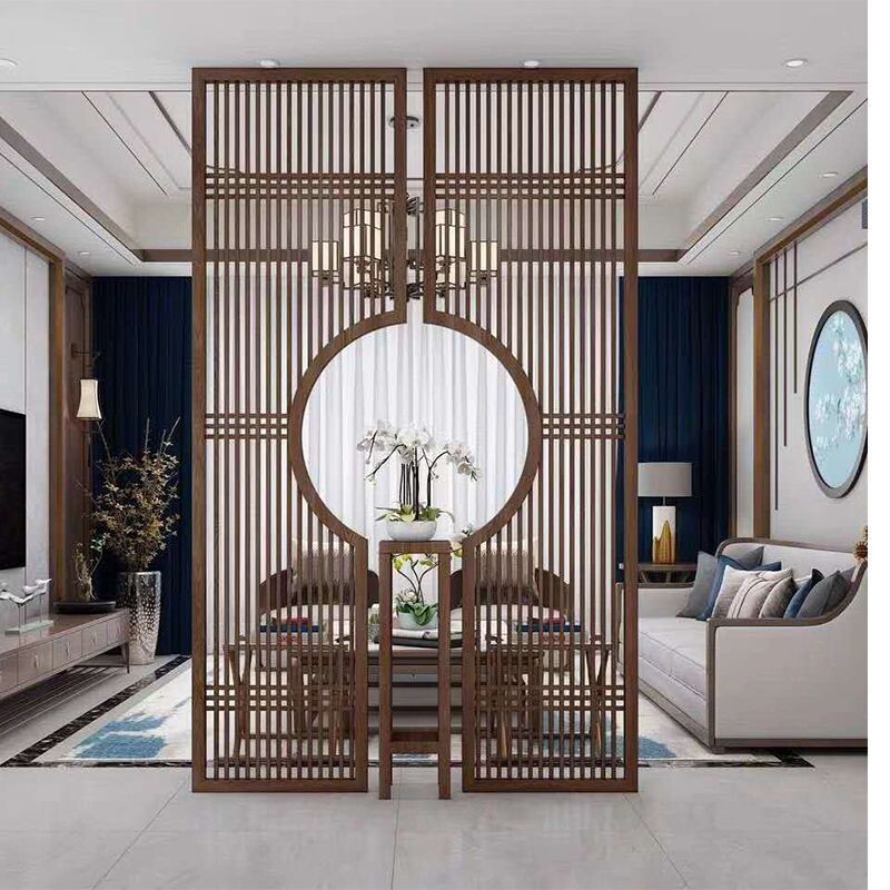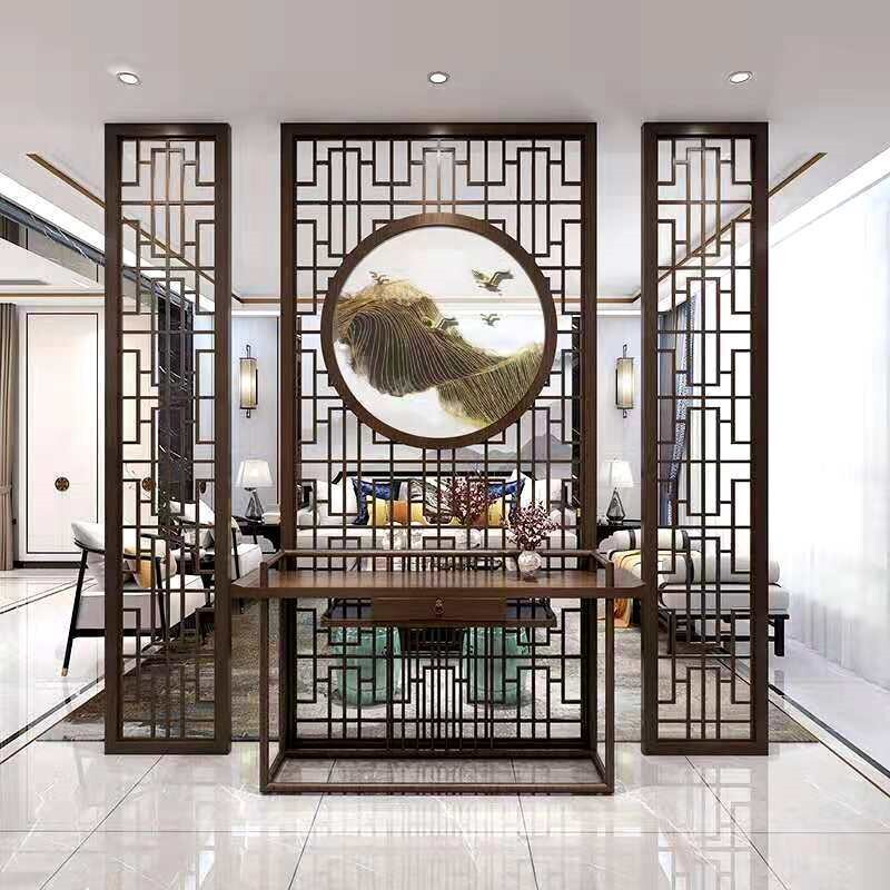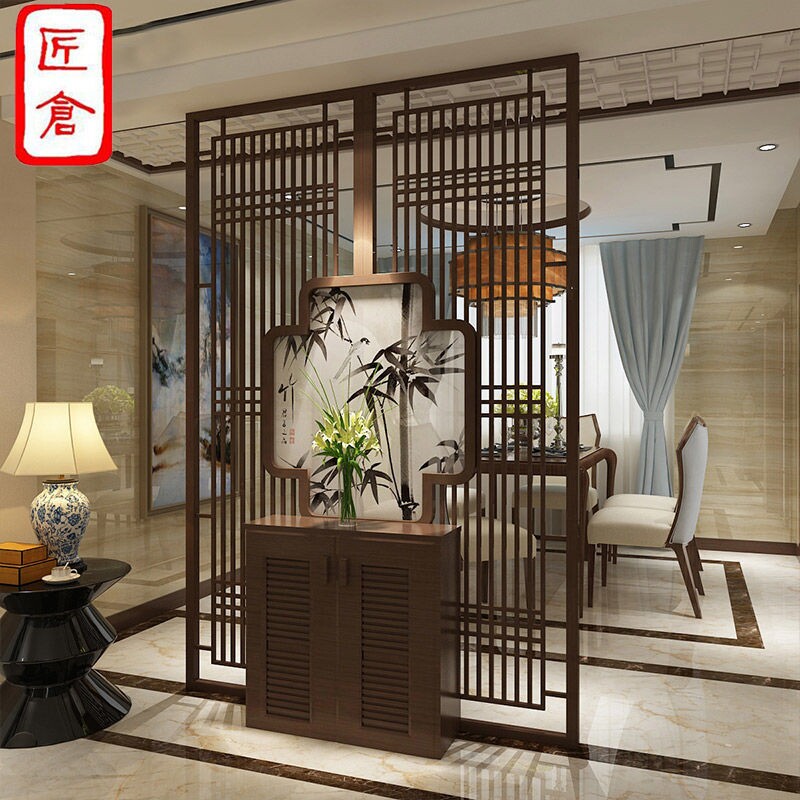 Genguan Home Screen Hollowed-out Partition Wall Living Room New Chinese Background Wall Solid Wood Flower Grid Antique Doors And Windows-Taobao