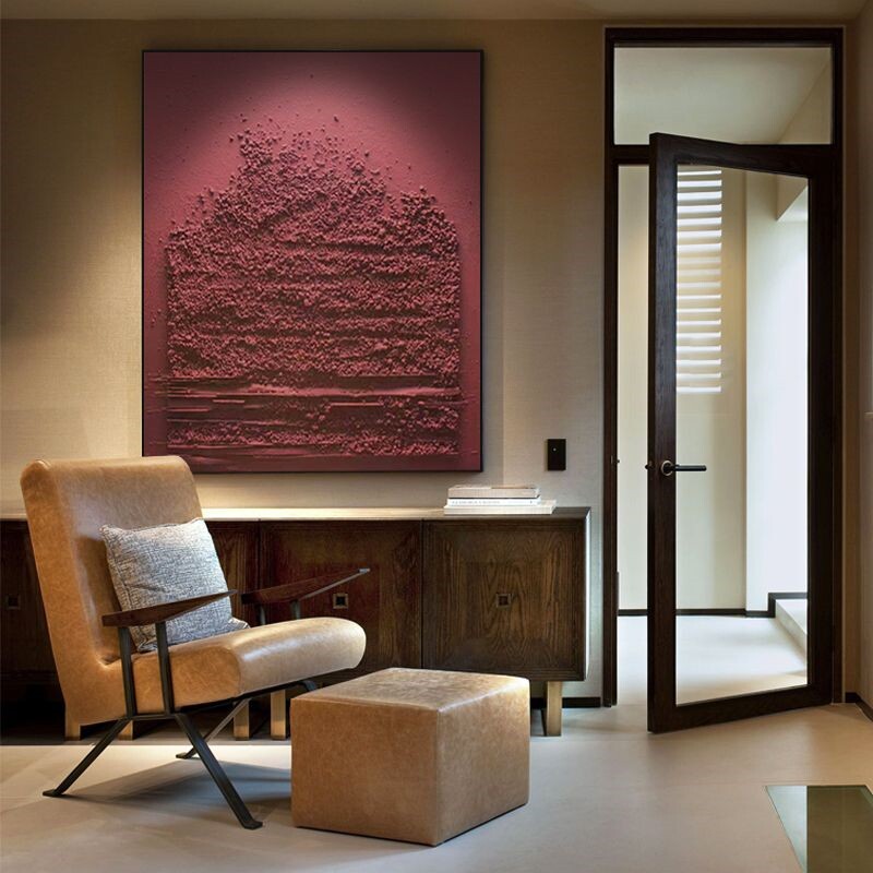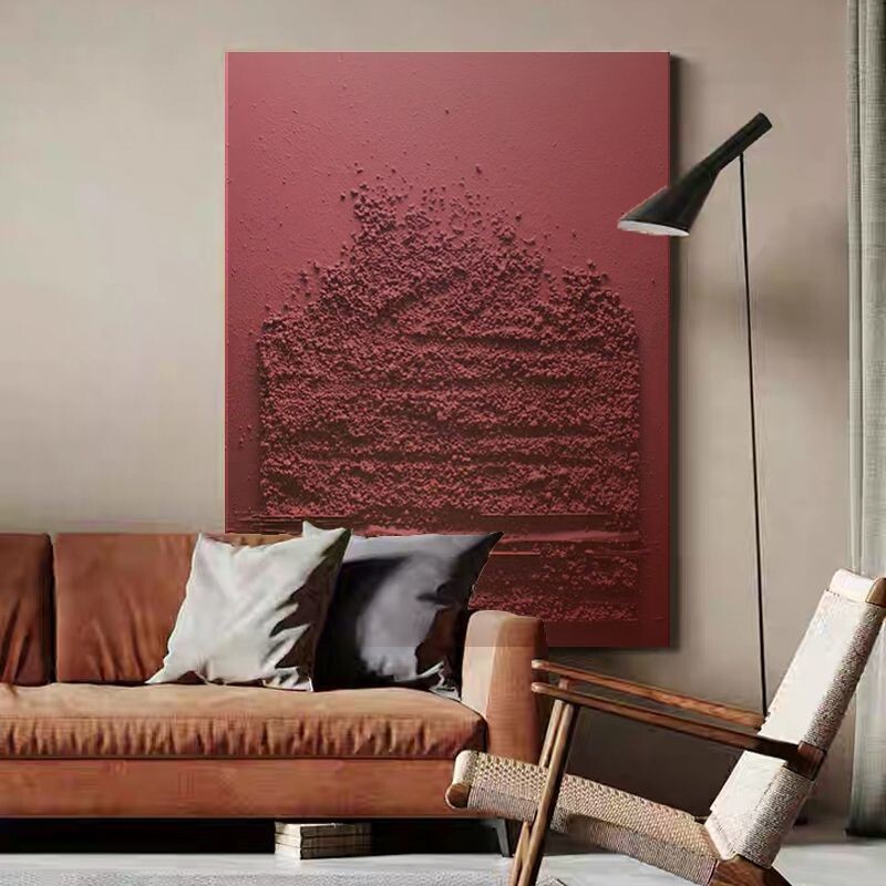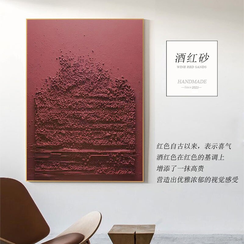 Hand painted oil painting < wine red sand > modern extremely simple living room decoration painting Xuanguan three-dimensional sandstone caricatology painting light extravagant painting-Taobao