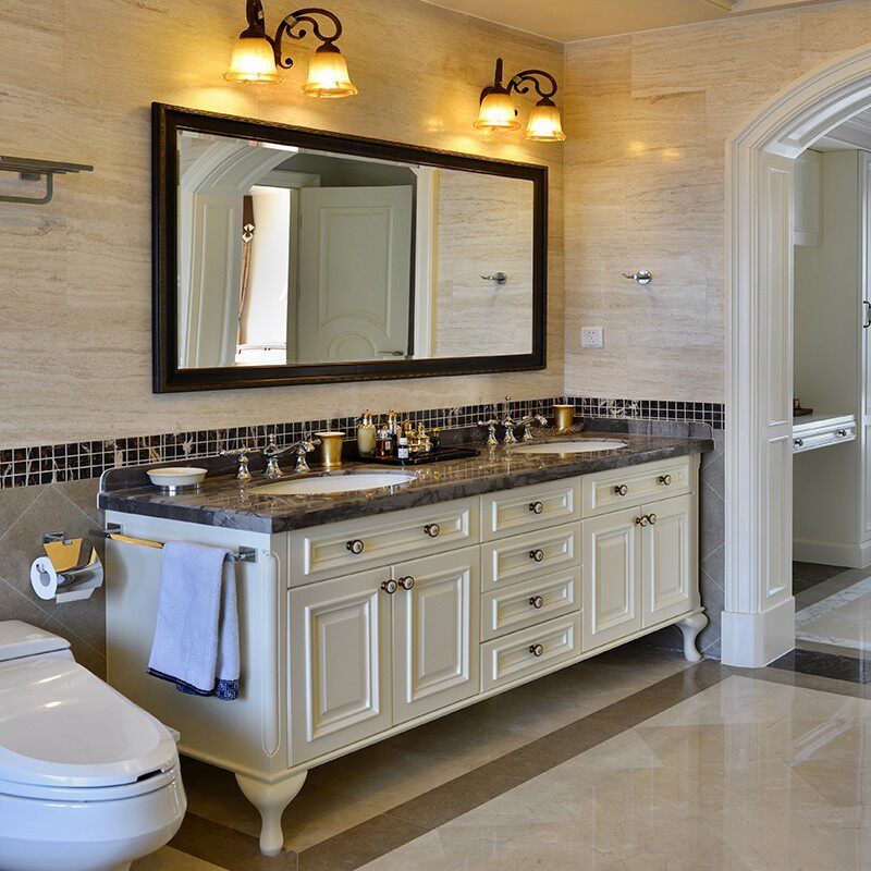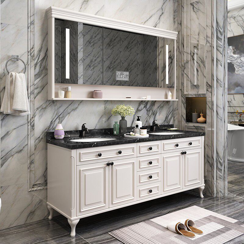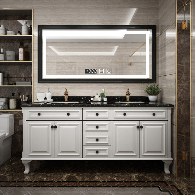 American Bath Room Cabinet Combined Oak Wood Floor Type Wash Wash Basin Pool Eurostyle Double Basin Solid Wood Wash Terrace Bathroom Cabinet-Taobao