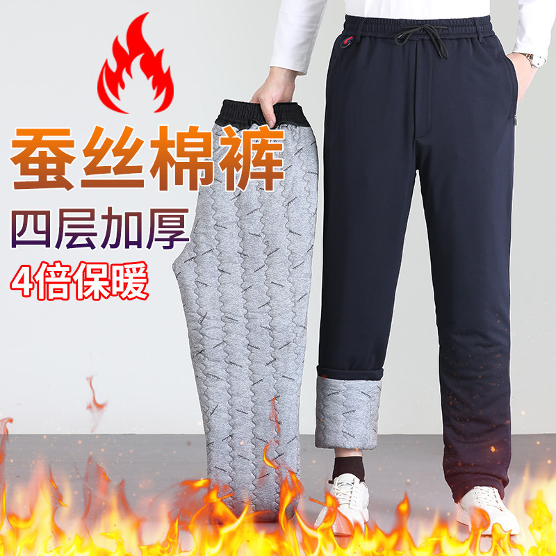 Silk cotton pants men's autumn winter thickened outside wearing dad pants in old age Northeast Anti-cold and warm old man-Taobao