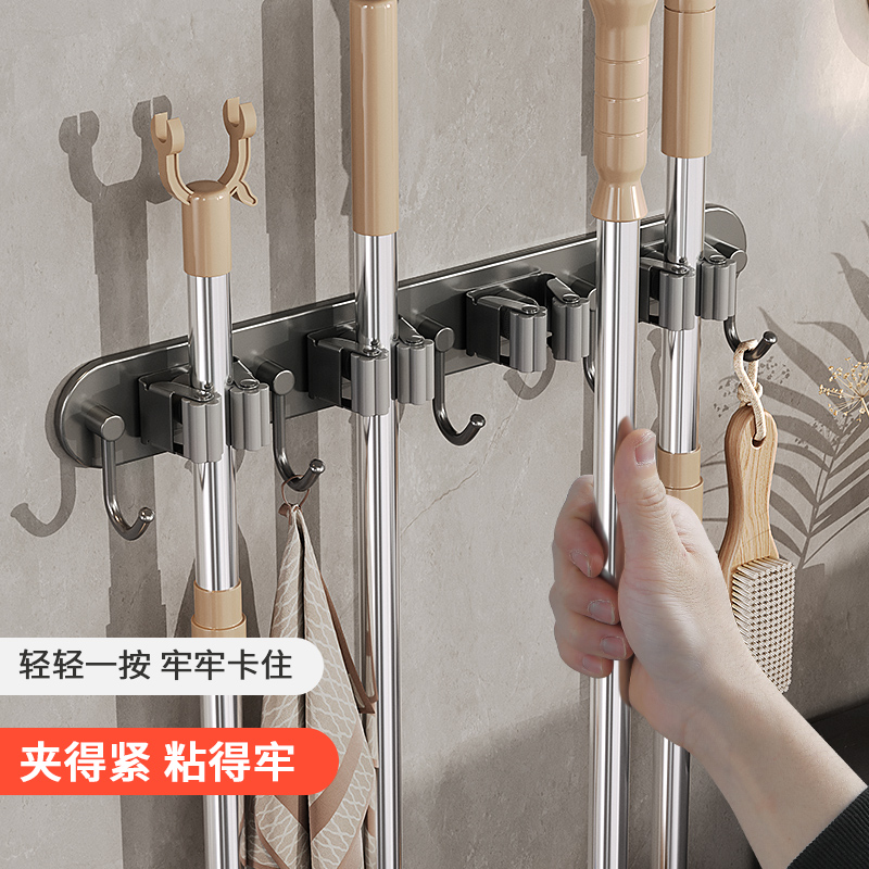 Mop wall-mounted clamp-free washroom mop rack containing devinator large hook hung with mop sweep to remove the fixed frame-Taobao