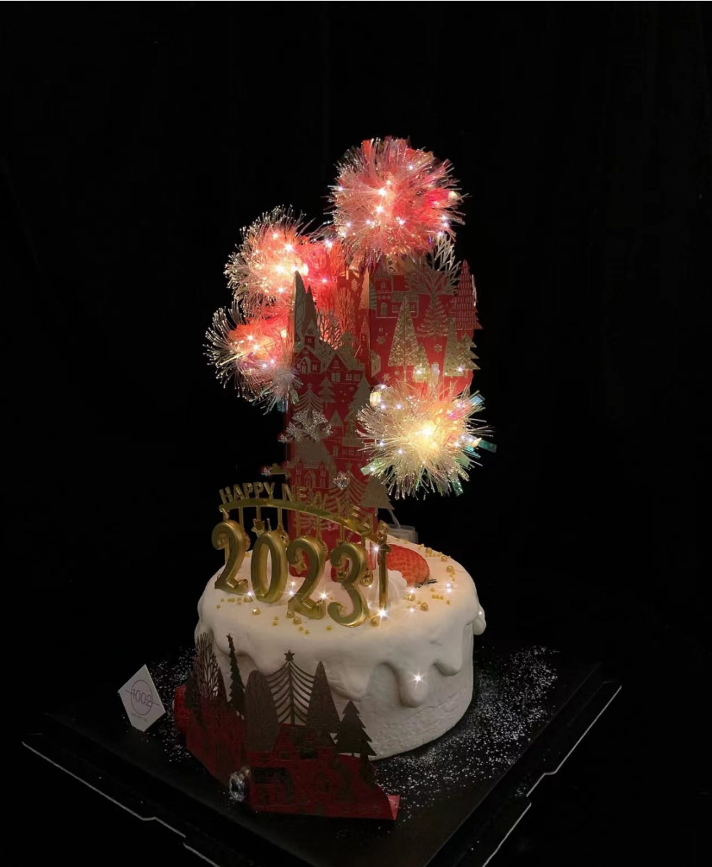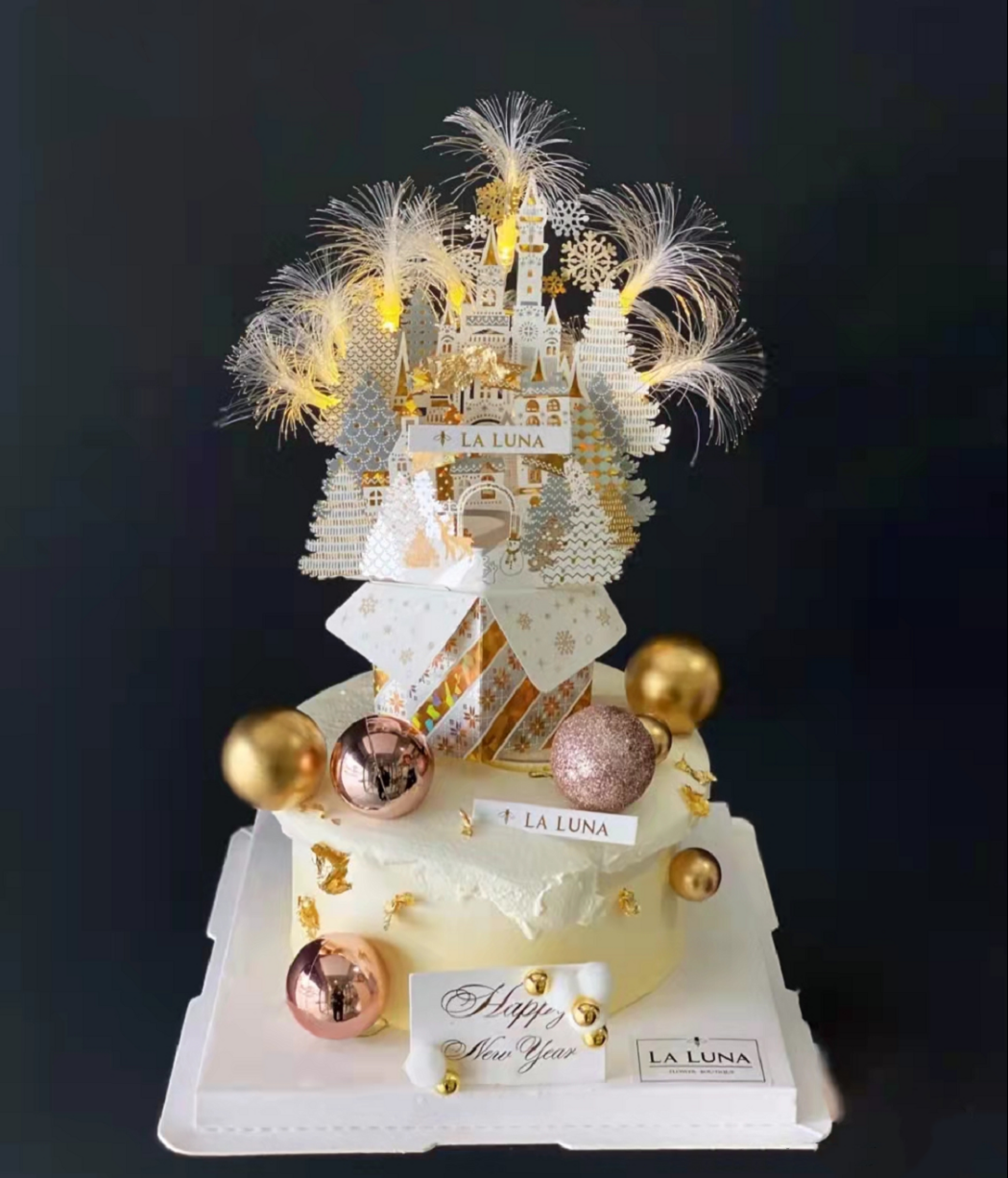 The same New Year 2023 hollow castle hollow light cake decoration parts