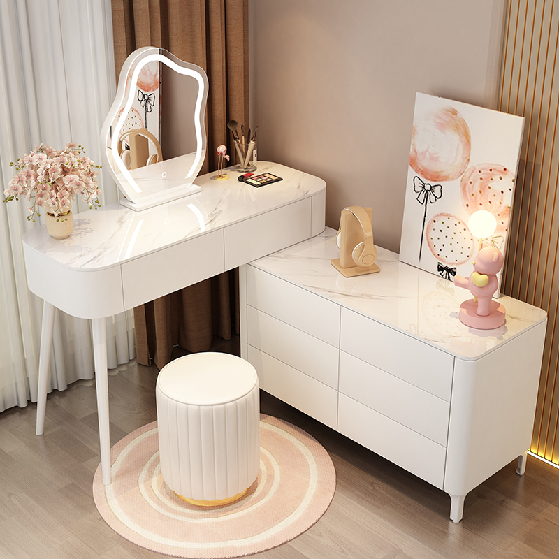 Solid Wood Rock Board Dresser Dresser Cream Wind All-wood Bucket Cabinet Modern Minimalist cabinet Makeup Table Integrated Makeup Table-Taobao