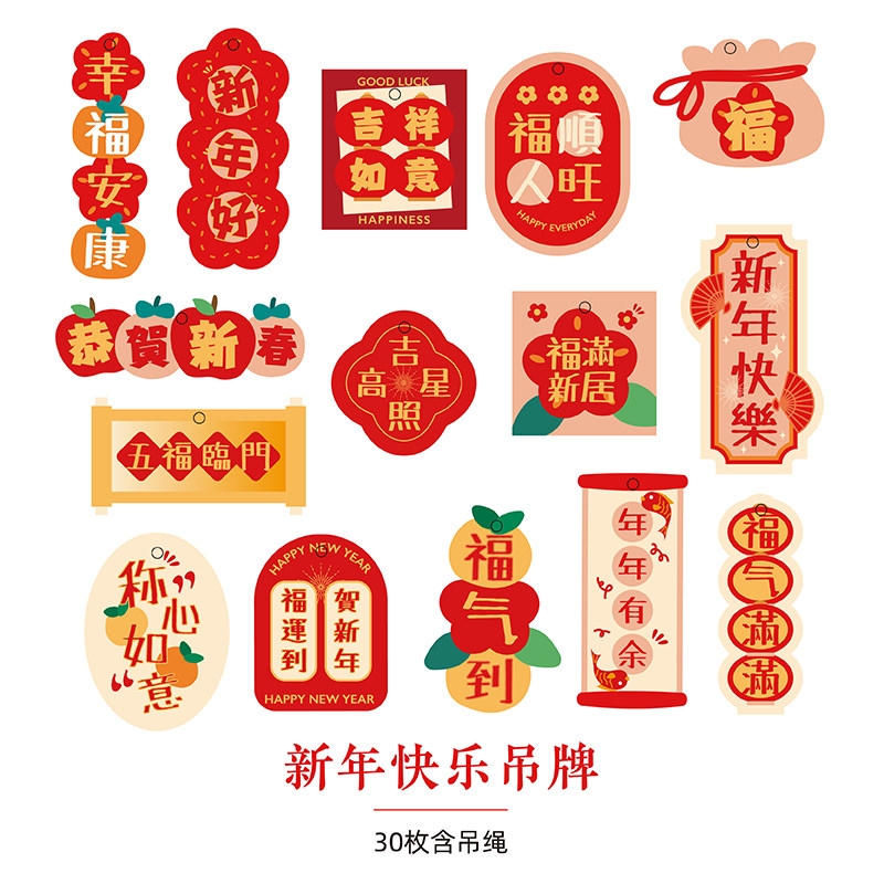 Set of 30 pieces (Happy New Year) with red rope set of 30 pieces (big rich and expensive) with red rope set of 30 pieces (Fosun high photos) with red rope set of 30 pieces (good luck even with B) with red rope set 3
