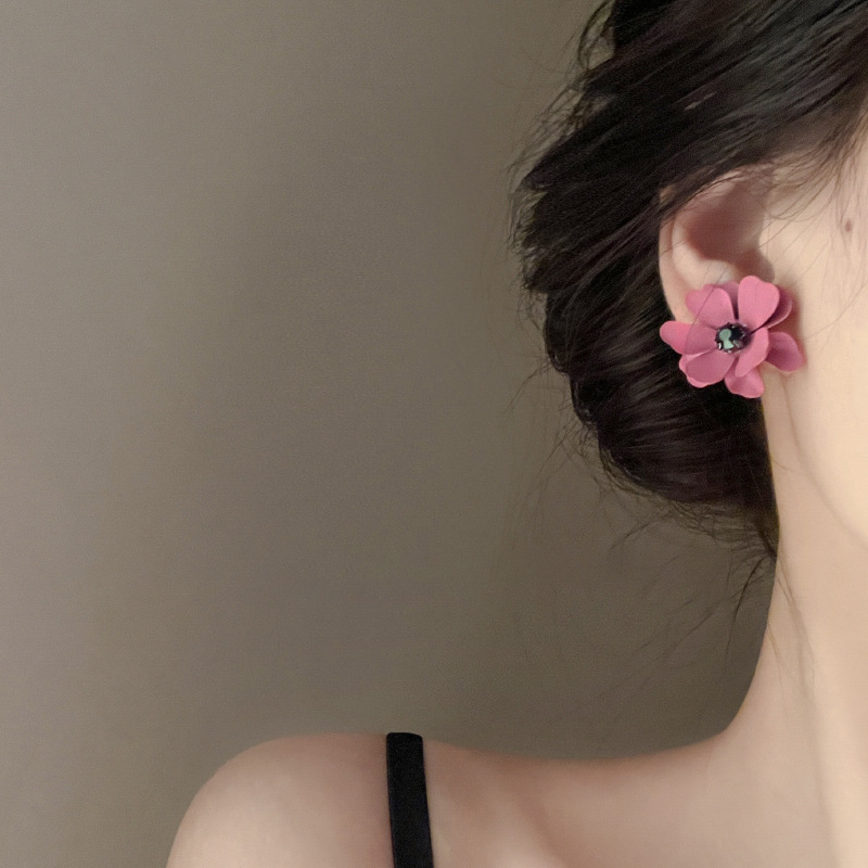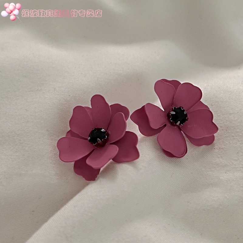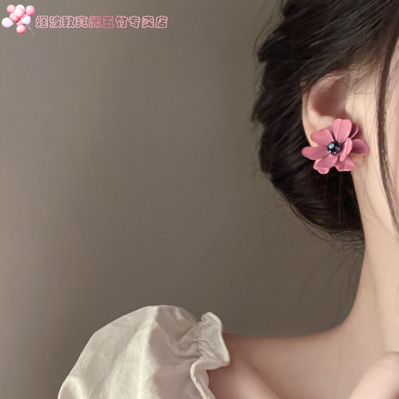 New wave silver Needle inlaid with flowers earrings Han version retro fashion Temperament Ear Nails Brief 100 hitch Personality Tidal earrings-Taobao