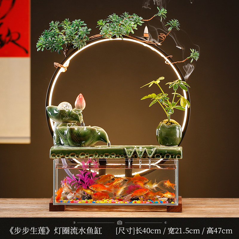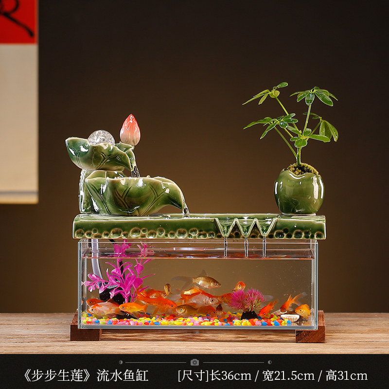 Pipeline fish tank cycle oxygen-oxygen-enhancing round living room small desktop ultra-white glass ceramic creative living room