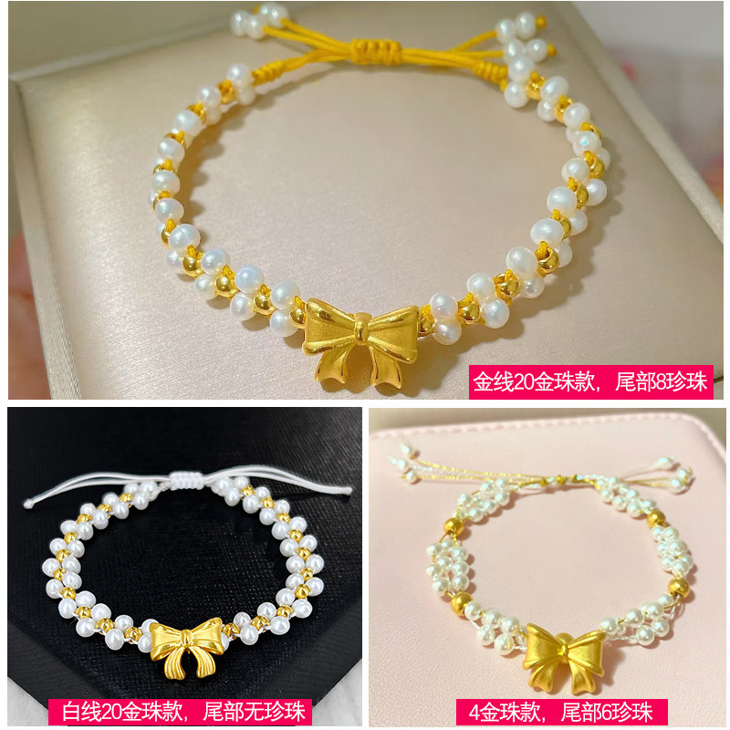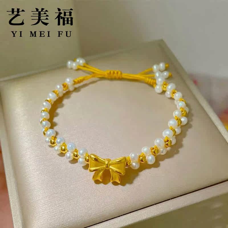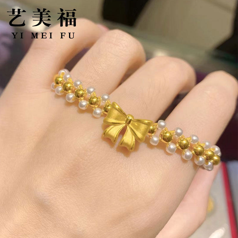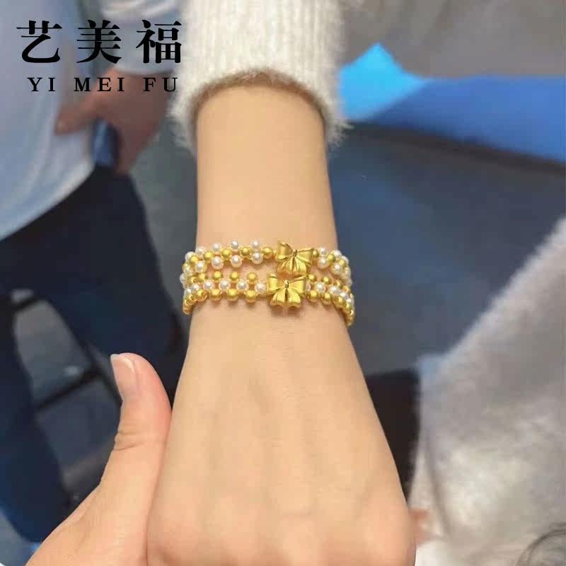 Golden Butterfly Bracelet woman 999 foot gold small gold neck chain pearl weaves a new princess knitting chain
