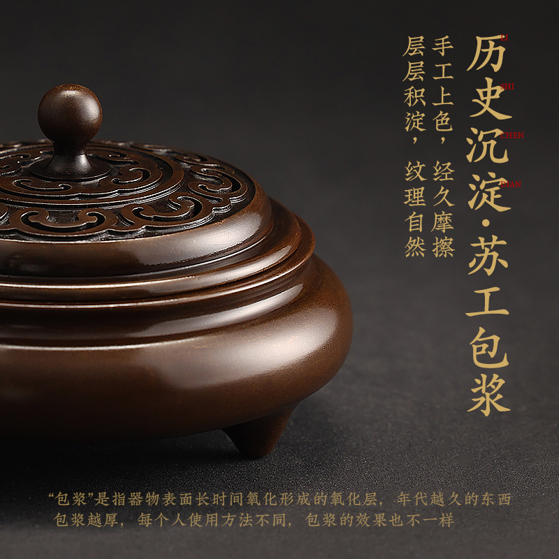 Suworkers red copper color incense stove home sandalwood smoked incense stove indoor pure copper pan fragrant incense stove fragrant seal tea track Xuande stove-Taobao