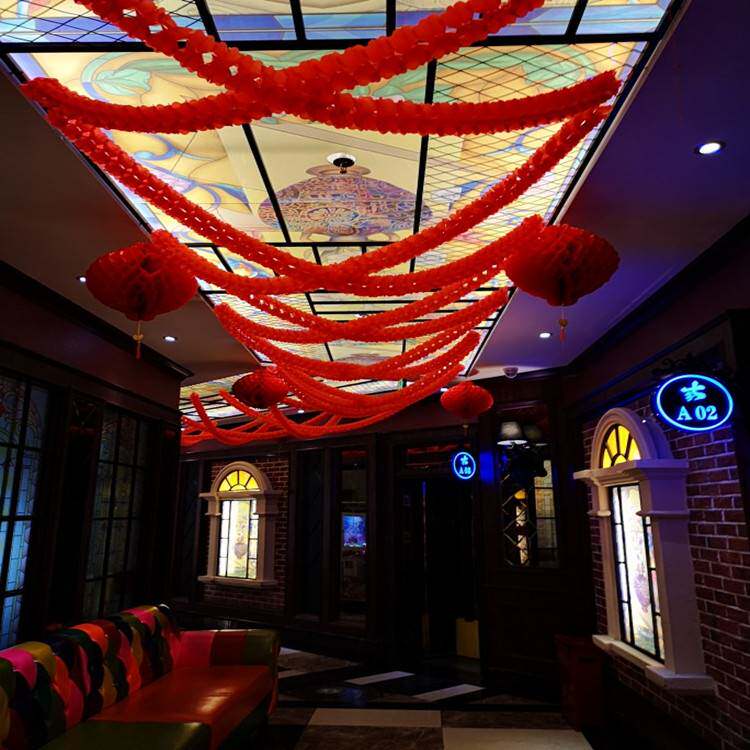 New Year of New Year decorations in the Spring Festival Supermarket mall New Year decorations red laflower small round strips of small red strips colored with colorful strips of New Year's Day decorations-Taobao