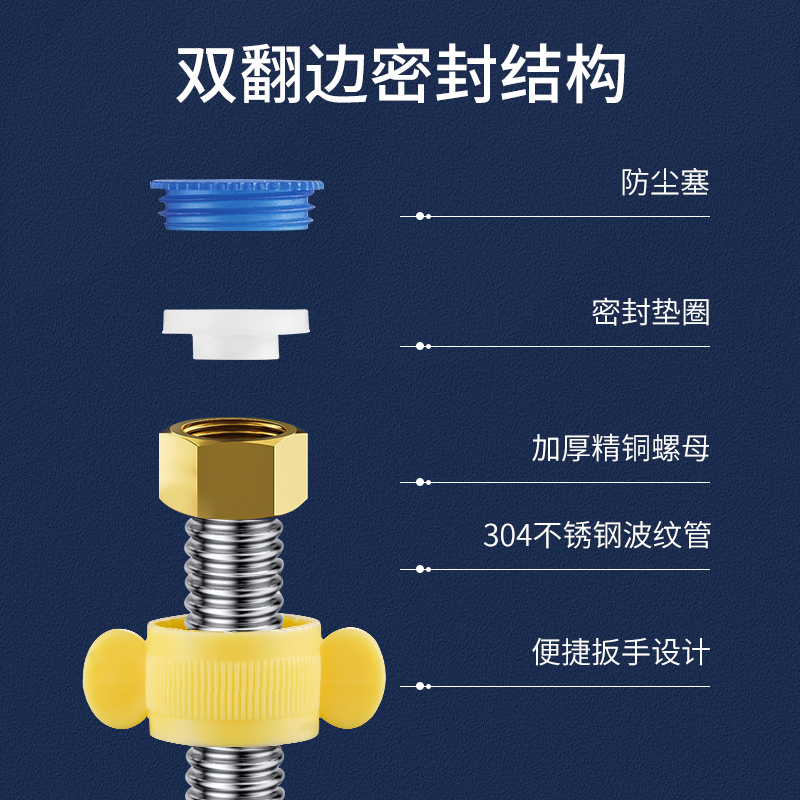 Odebau 304 stainless steel bellows water heater out of water inlet pipe hose toilet high-pressure explosion proof metal connection-Taobao