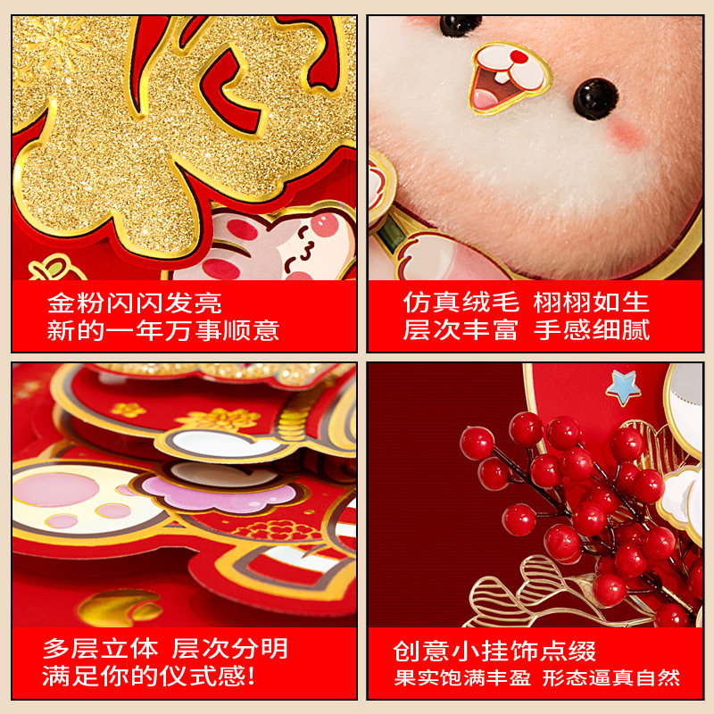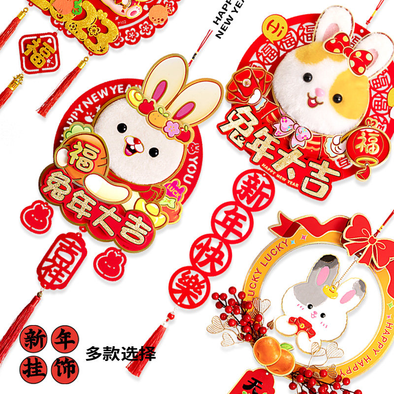 The Spring Festival decorates the 2023 Rabbit Year Living Room decorated with Zodiac Hanging New Year Cartoon Hanging Stereo Fur New Year
