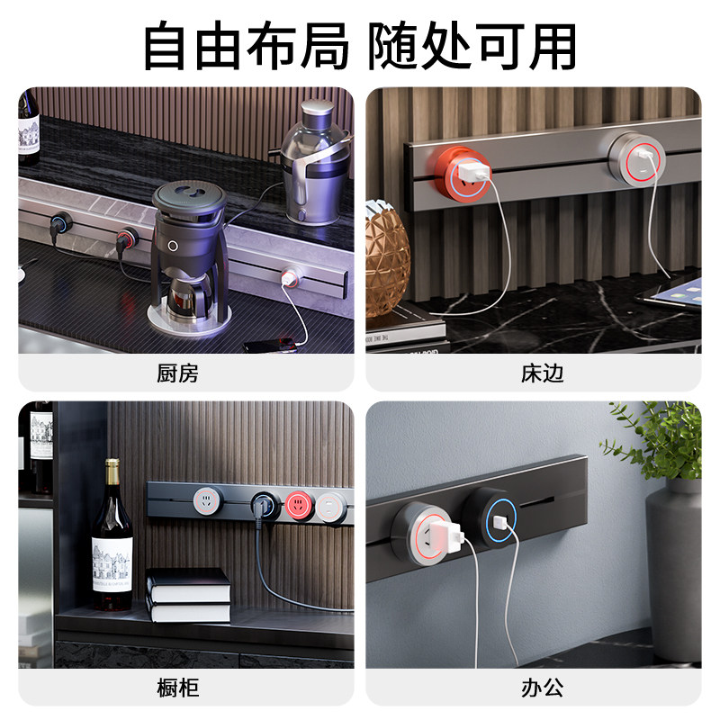 Silmon track socket mobile row socket track wine cabinet sideboard socket embedded slideway power supply