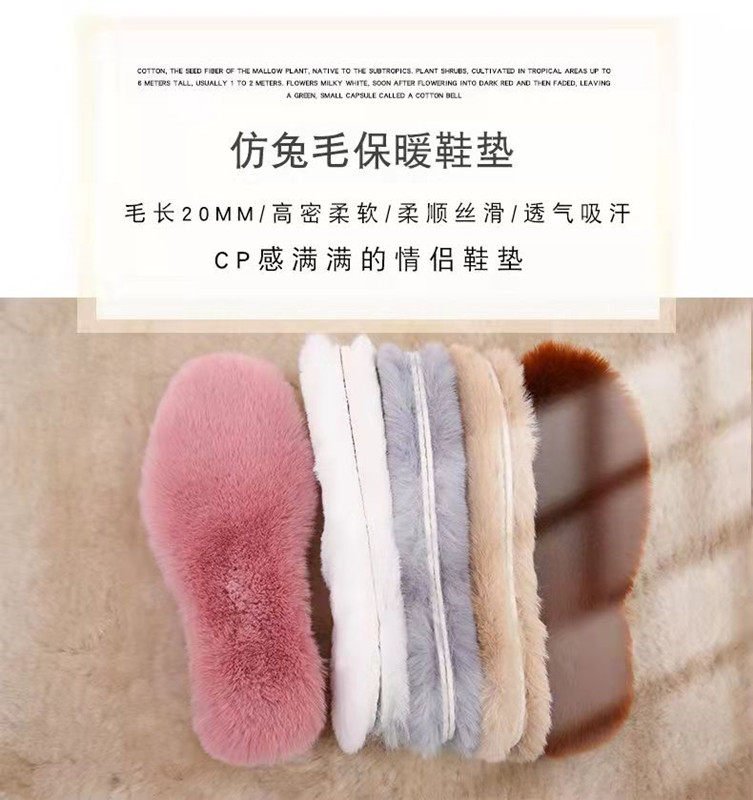 Imitation rabbit fur insole winter new plus velvet thickened fur integrated wool insole breathable and sweat-absorbing super soft cold-proof