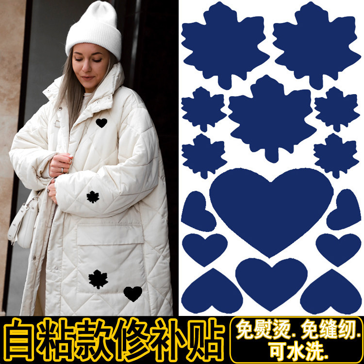 Self-adhesive duvet coat cloth with trace repair breaking hole patch patch patch patch pattern pattern pattern pattern slit
