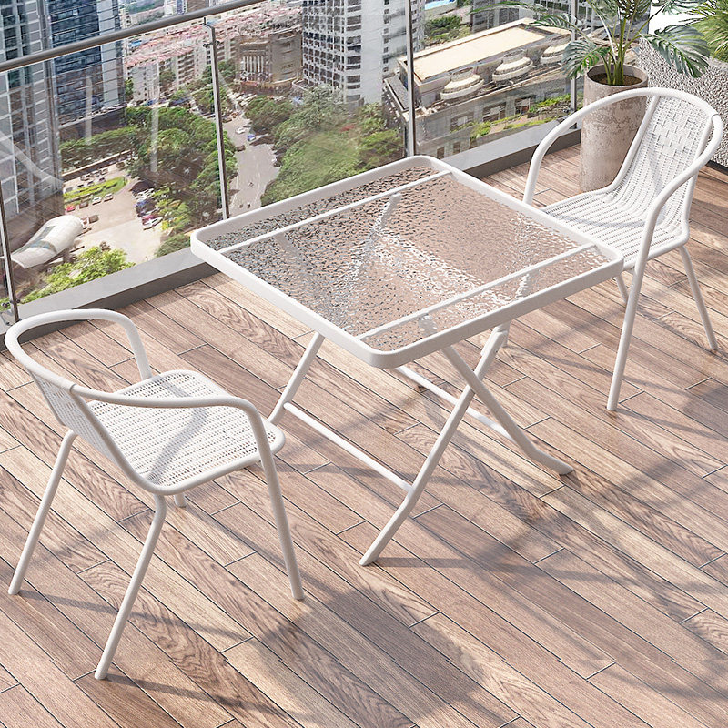 Balcony small table and chairs One table Two-chair outdoor patio minimalist casual tea table and chairs white glass folding tea table combination-Taobao