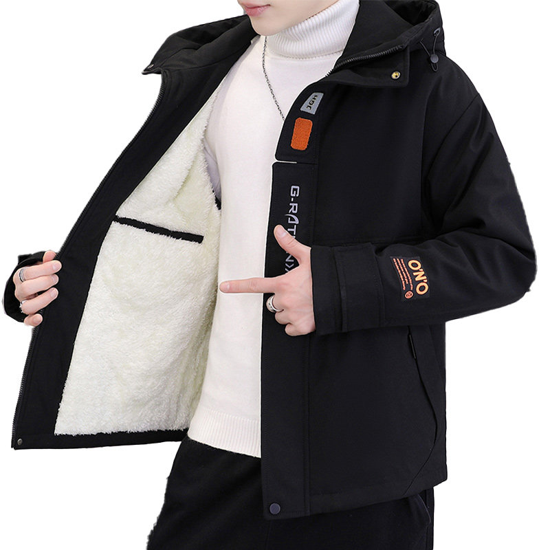 Jacket Man Winter Plus Suede Thickened Tide Card Tide casual jacket Men's hat Assault Jacket Warm Teenagers Cotton Clothing-Taobao
