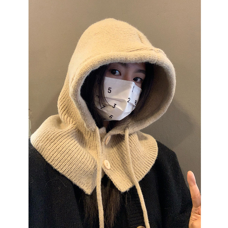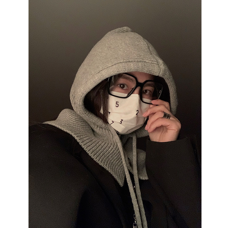 South Korea Balabalafa hat Women Winter warmth hat Waistcoat Neck Integrated Couple with Protective Ear Hair Thread Knit Cap-Taobao
