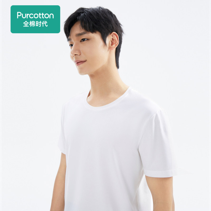 Full cotton era new men and women comfortable elastic minimalist antibacterial round collar beating bottom short sleeve white T-shirt with pure cotton-Taobao