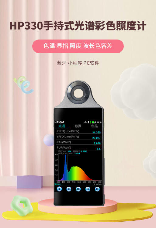 Handheld spectral color illumination meter color temperature color rendering index color tolerance coordinate spectral power distribution detector