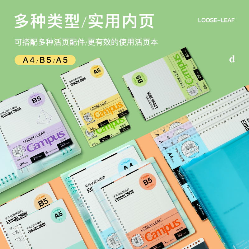 Japan renowned kokuyo loose-leaf bentecore paper English pane notebook 26 26 holes 20 holes inner core B5A5-Taobao