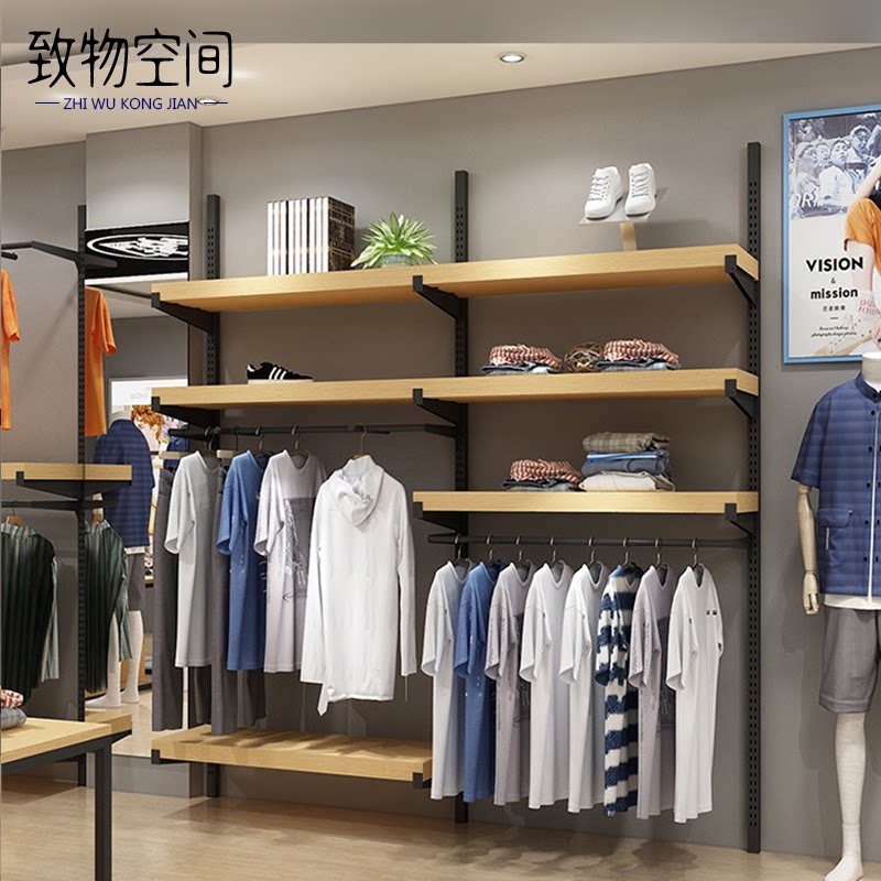 Clothing store display rack Iron Industrial Ferrow shelf hanging wall layer display frame free combination hanging rack