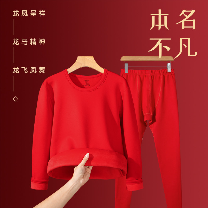 Ben Life Underwear Suit Men's Warm Underwear Red Wedding Dragon Year 2024 Pure Cotton Autumn Clothes Autumn Pants Women Suit-Taobao