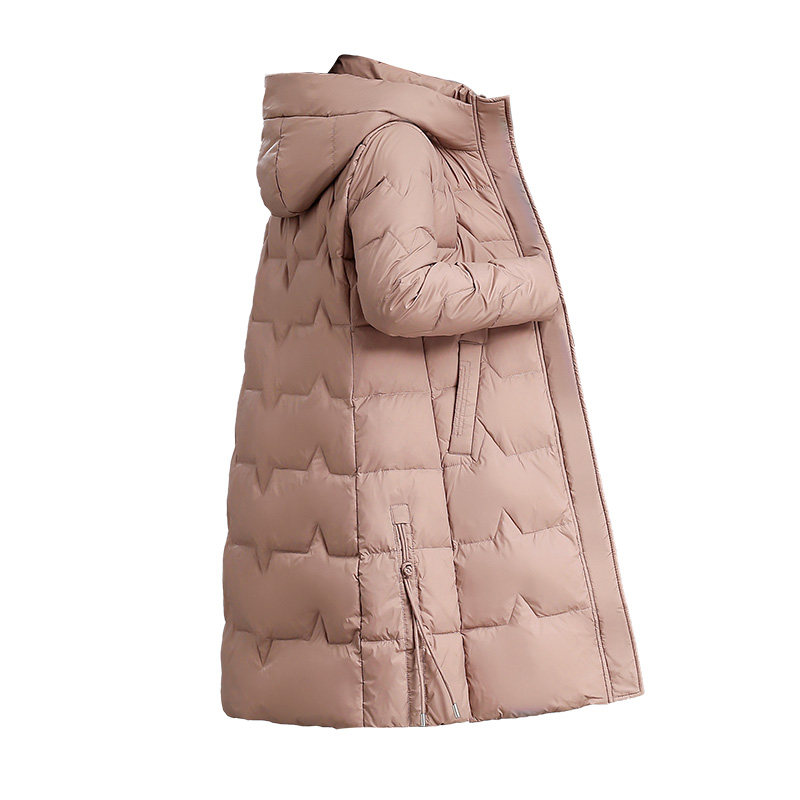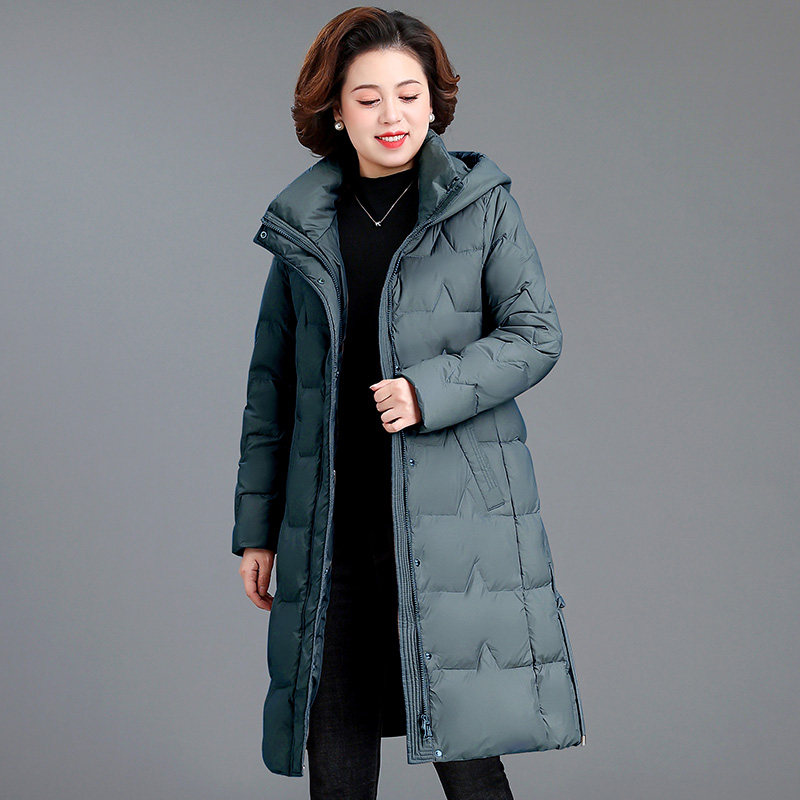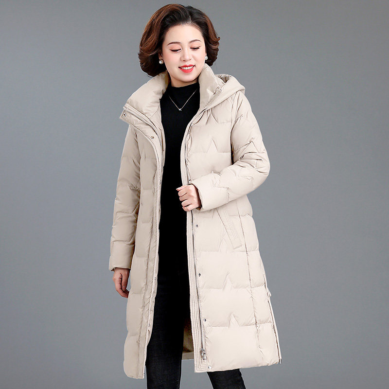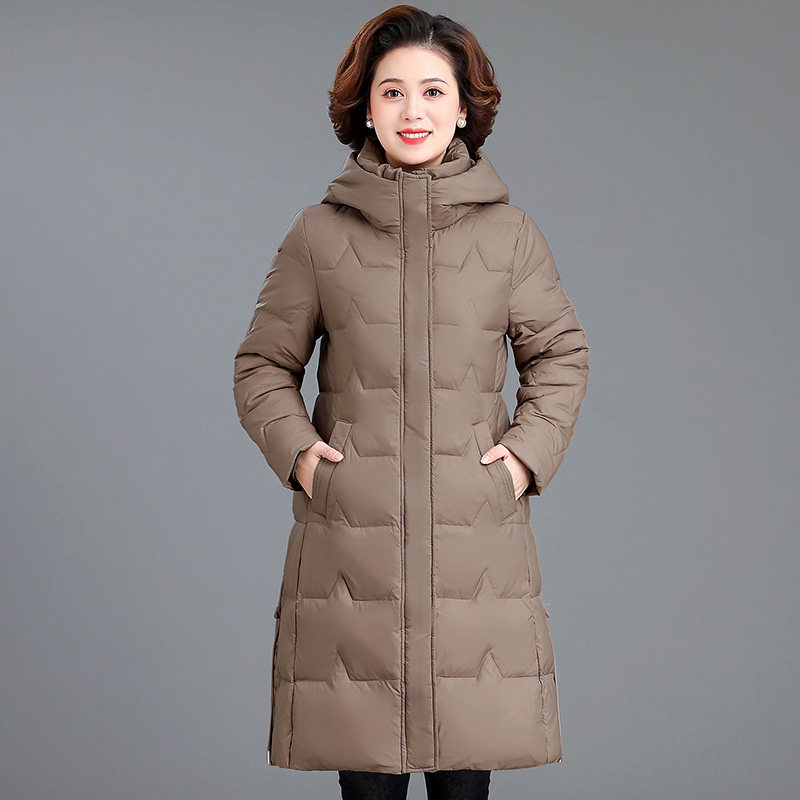 Romon Mom Winter Clothing Down Clothes Long style Ocean Qi Middle-aged Woman Pure white duck suede jacket with aged cotton padded jacket thick-Taobao
