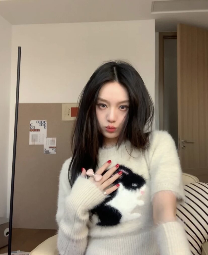 Furry little white rabbit sweet and hot girl with short fur coat spring new fit sleeve knitted pure desire for a small blouse blouse-Taobao
