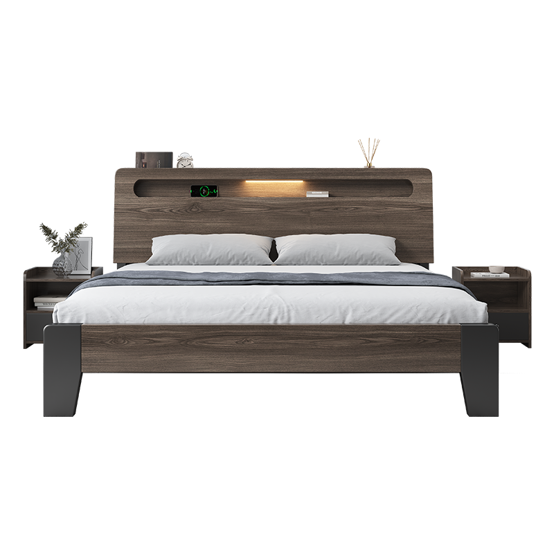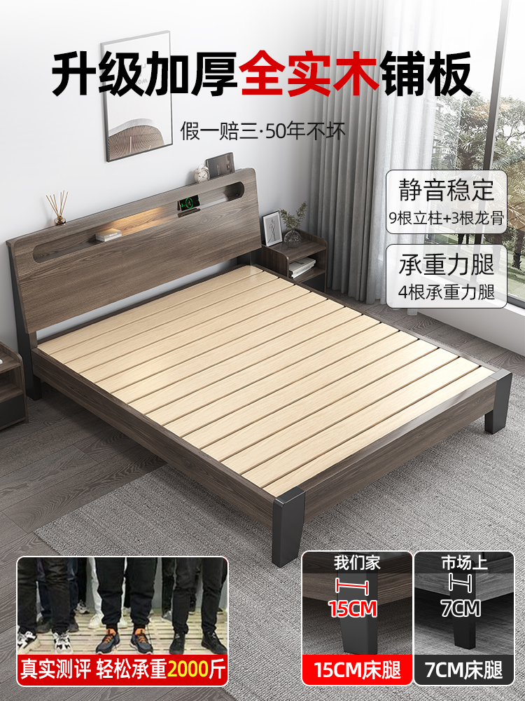 Solid wood bed modern minimalist about 1 5 m double bed main bedroom with a large bed rental room with a collapsed rice bed 1 8 single bed frame-Taobao