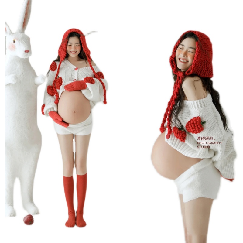 Pregnant Woman Photos Clothing Red Christmas Themed Movie surrogacy Mimi Write a real photo sweater Art photo clothes at home-Taobao