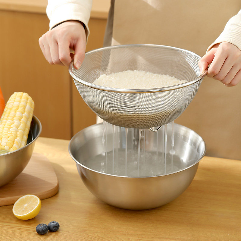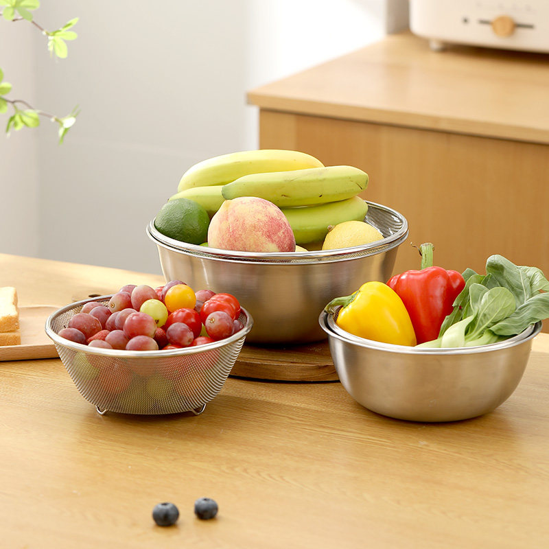 Stainless Steel Basin (19cm) Stainless Steel Basin (24cm) Stainless Steel Drain Basket (18cm) Stainless Steel Drain Basket (24cm) Small Set (Drain Basket 18cm Steel Basin 1