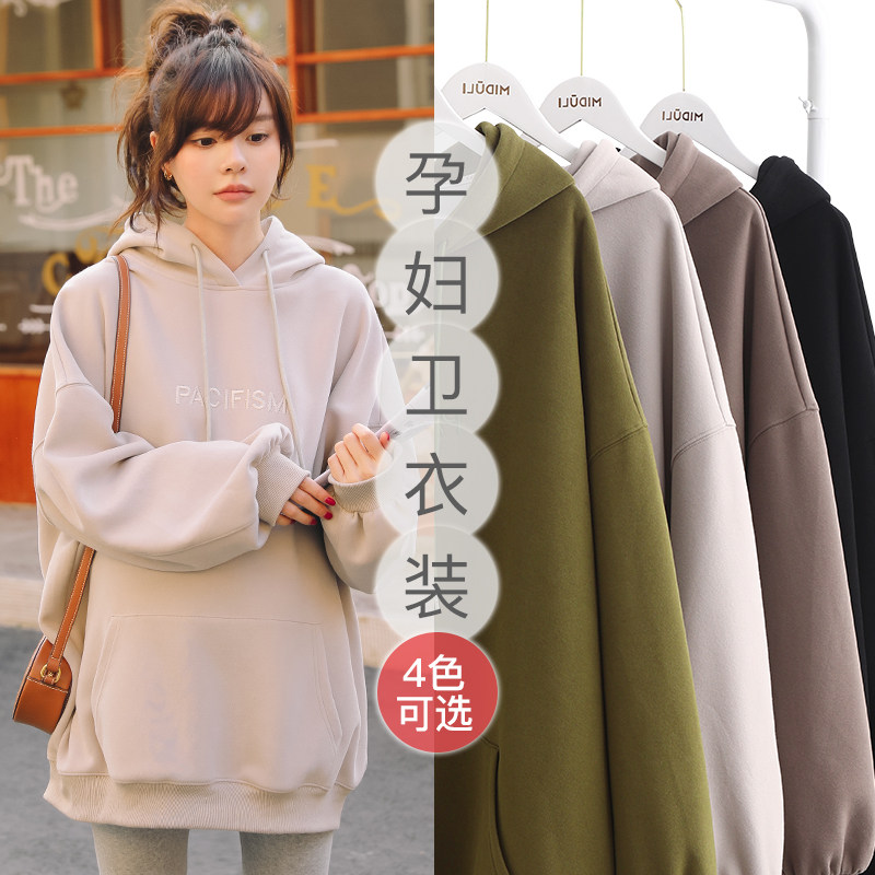 Pregnant women's clothing autumn clothing 2023 new pregnant women's necropolis winter plus suede blouses for the spring and fall of the undershirt jacket winter dress-Taobao